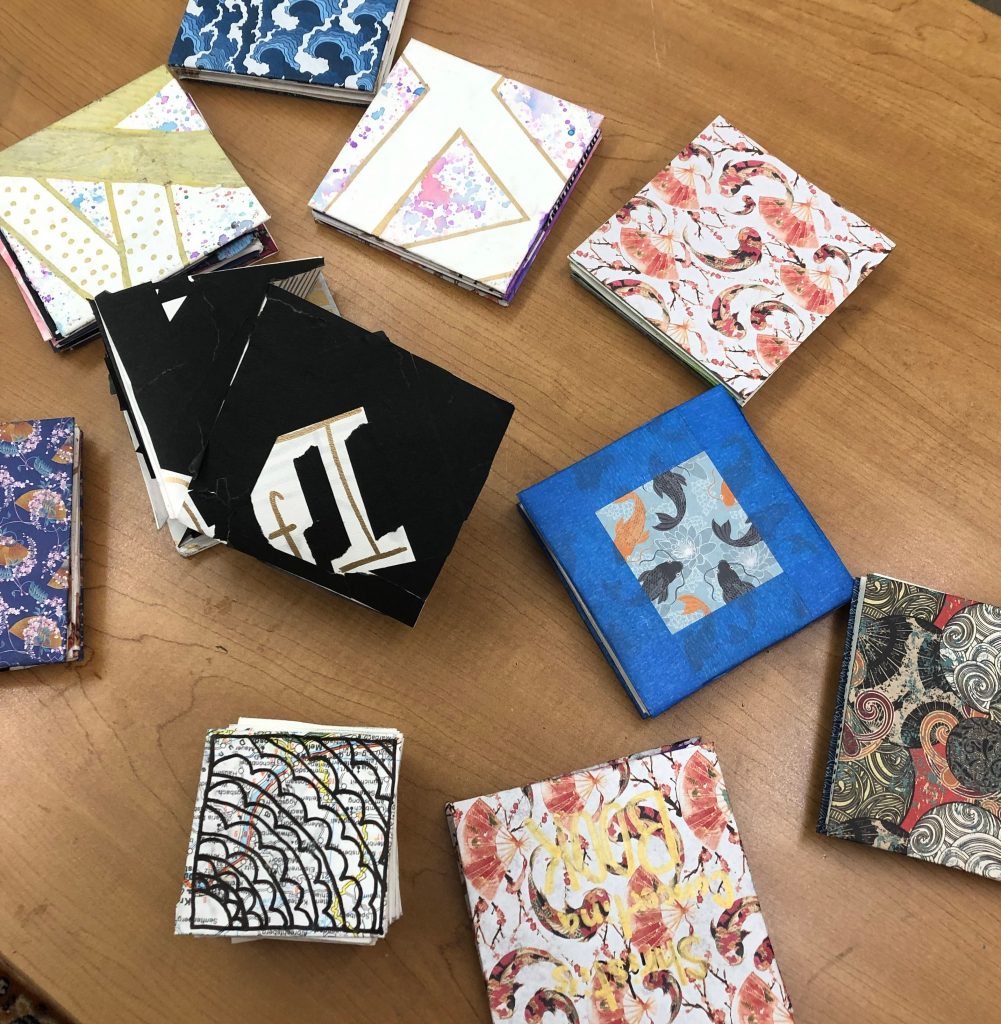 We ended the week with both groups working on the same project and once again, they astounded us. Check out some videos of just a few gorgeous concertina books made by campers here.