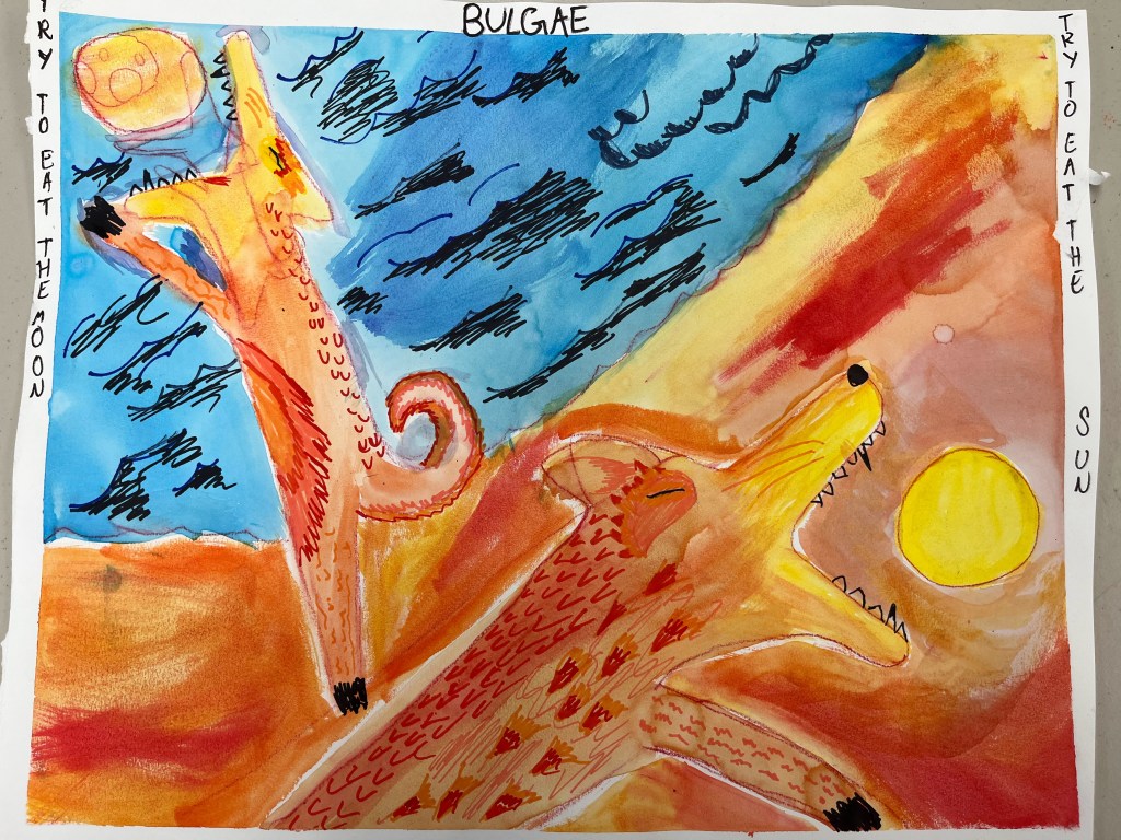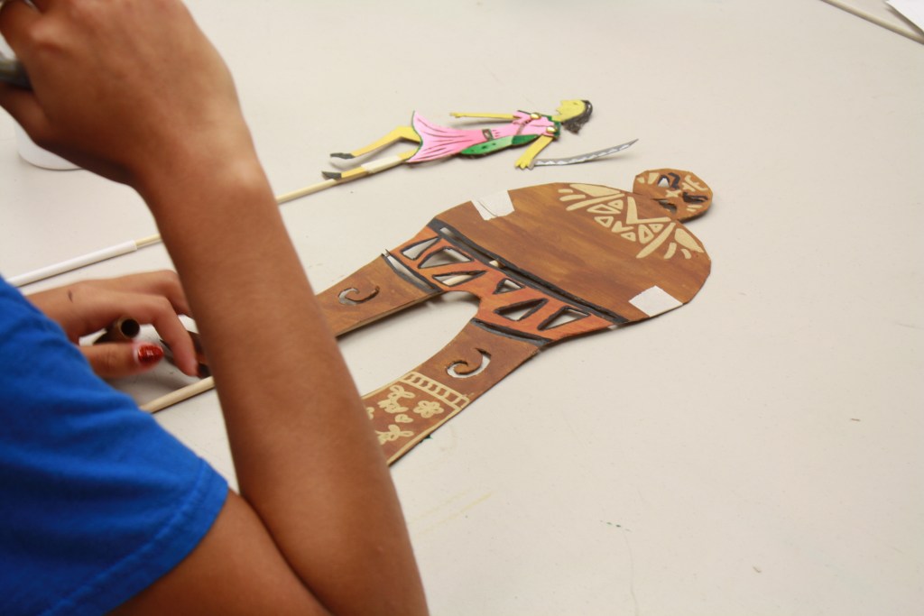 Students read and learned about a variety of world mythology and looked at illustration and book making from various cultures during medieval times, before focusing in on the ancient art of Indonesian Wayang Kulit puppetry. They then created their own puppets and produced and performed a modern Wayang Kulit show. This included designing and making characters and scenery, writing and performing scripts and working as a team to produce and film their play.