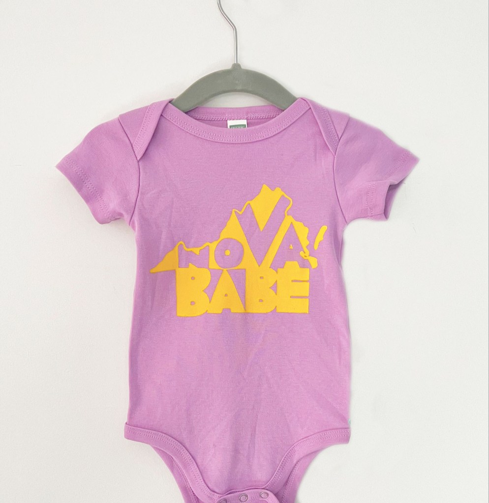 For tiny citizens of Northern Virginia, and their buddies! Long sleeved, soft and stretchy organic cotton.