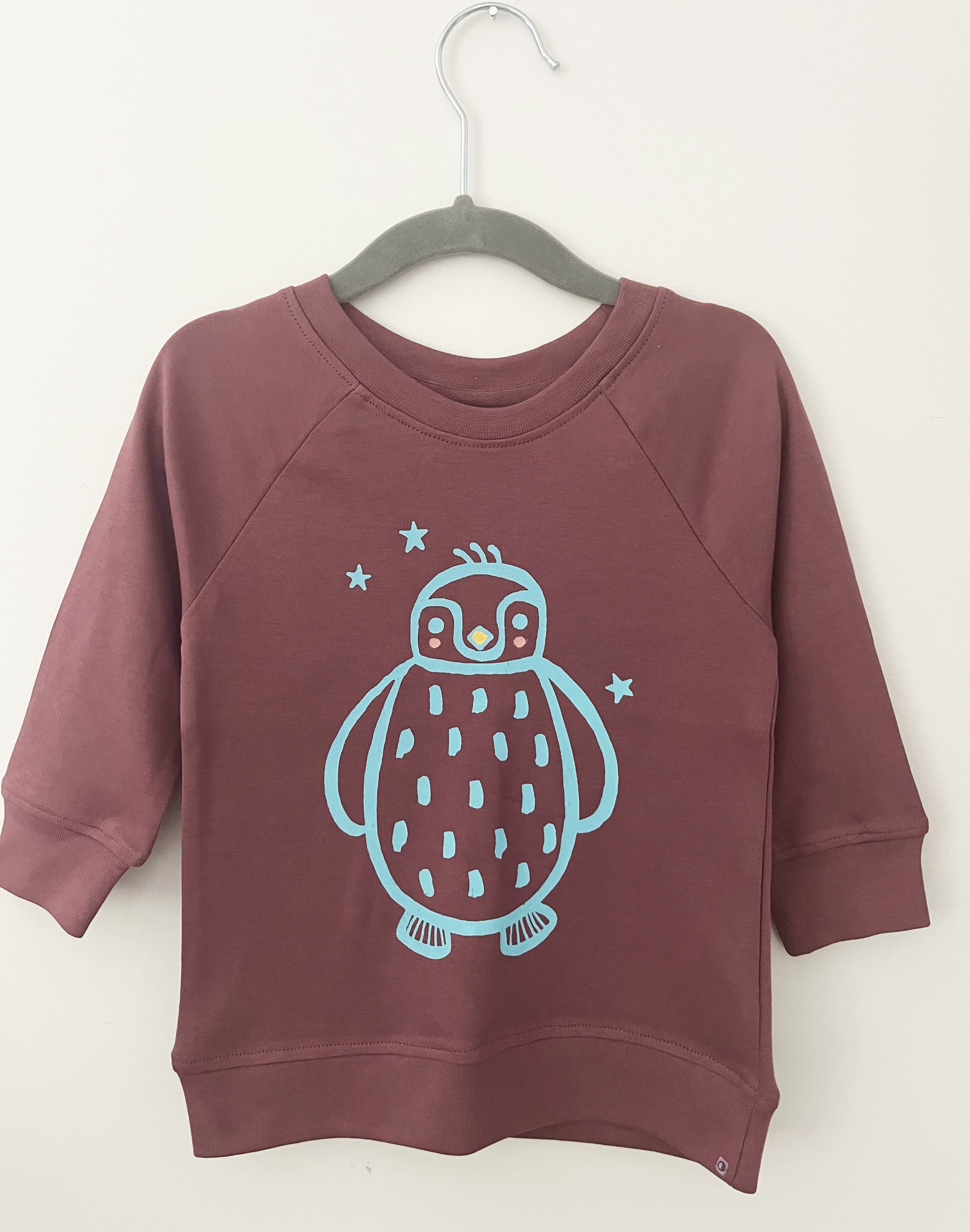 Soft and stretchy organic cotton (sweatshirts sourced from Colored Organics). Hand printed with hand painted details. Water based inks, heat cured for longevity. Machine washable.